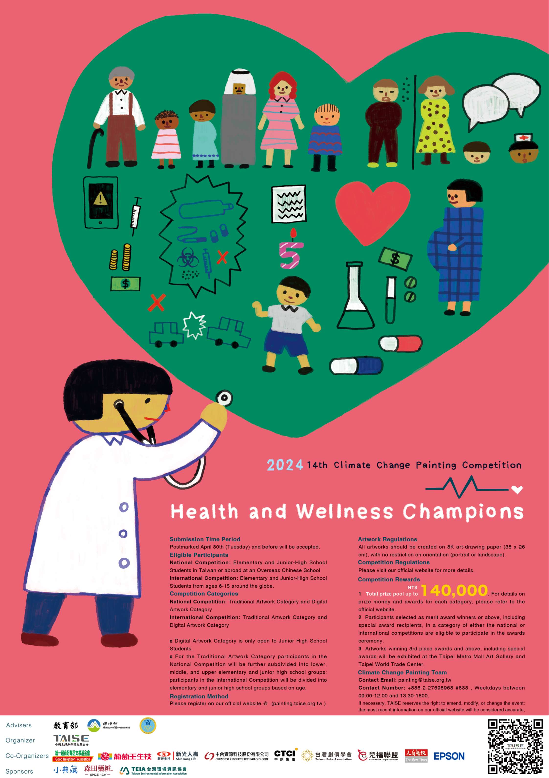 一、第14屆為呼應聯合國永續發展目標(SDGs)第3項「健康與 福祉」,以「健康小大使」為主題,提升師生對傳染病的 認知並共同探討如何預防傳染疾病;同時學習健康的生活 方式、情緒管理等等,亦須充分了解各項子目標的內容, 攜手邁向健康、平安生活。此繪畫比賽也呼應第13項,採 取氣候行動並提升大眾相關意識。