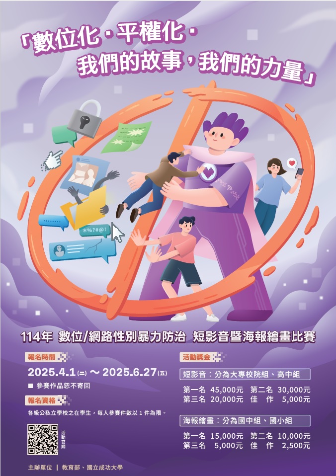 數位科技發展日新月異,隨著科技的進步與普及,數位/ 網路性別暴力已是一個日益嚴重的問題,對受害者的身心 健康和安全造成極大威脅。希冀學生運用創意表達,通過 生動的視覺與故事來傳遞反思與警示相關議題,提高社會 共鳴,從而加強對數位/網路性別暴力問題的關注與抵 制,爰辦理本活動。